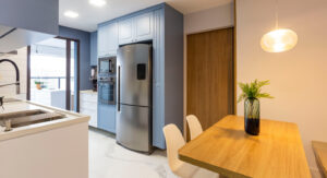 Com móveis sob medida, você pode transformar “espaços perdidos” em soluções úteis. Sabe aquele vão entre a geladeira e a parede? Ele pode virar uma despensa vertical com trilho deslizante.